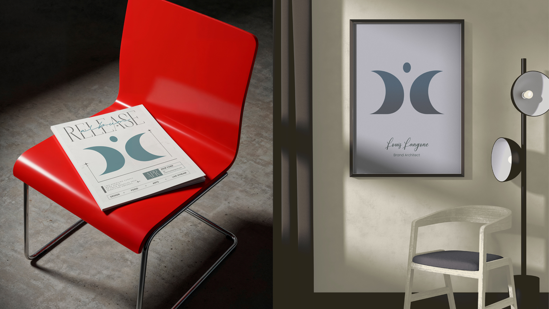 “The Path Divider” is the core logo of the personal corporate identity developed for Louis Langone, Brand Architect and Experience Strategist. Designed as the foundation of a full corporate identity system, the mark is composed of two opposing curves that part to form a central negative space. Within this opening, a human figure emerges — representing clarity, guidance, and the role of the architect who reveals direction.