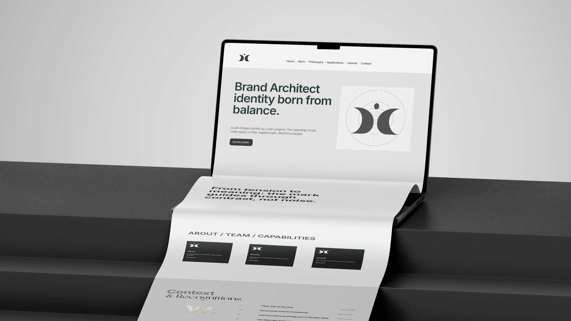As the primary element of Langone’s identity system, this logo anchors his upcoming ecosystem: website, book, framework, and communication materials. It establishes a distinct, recognizable visual language built on balance, precision, and conceptual depth.