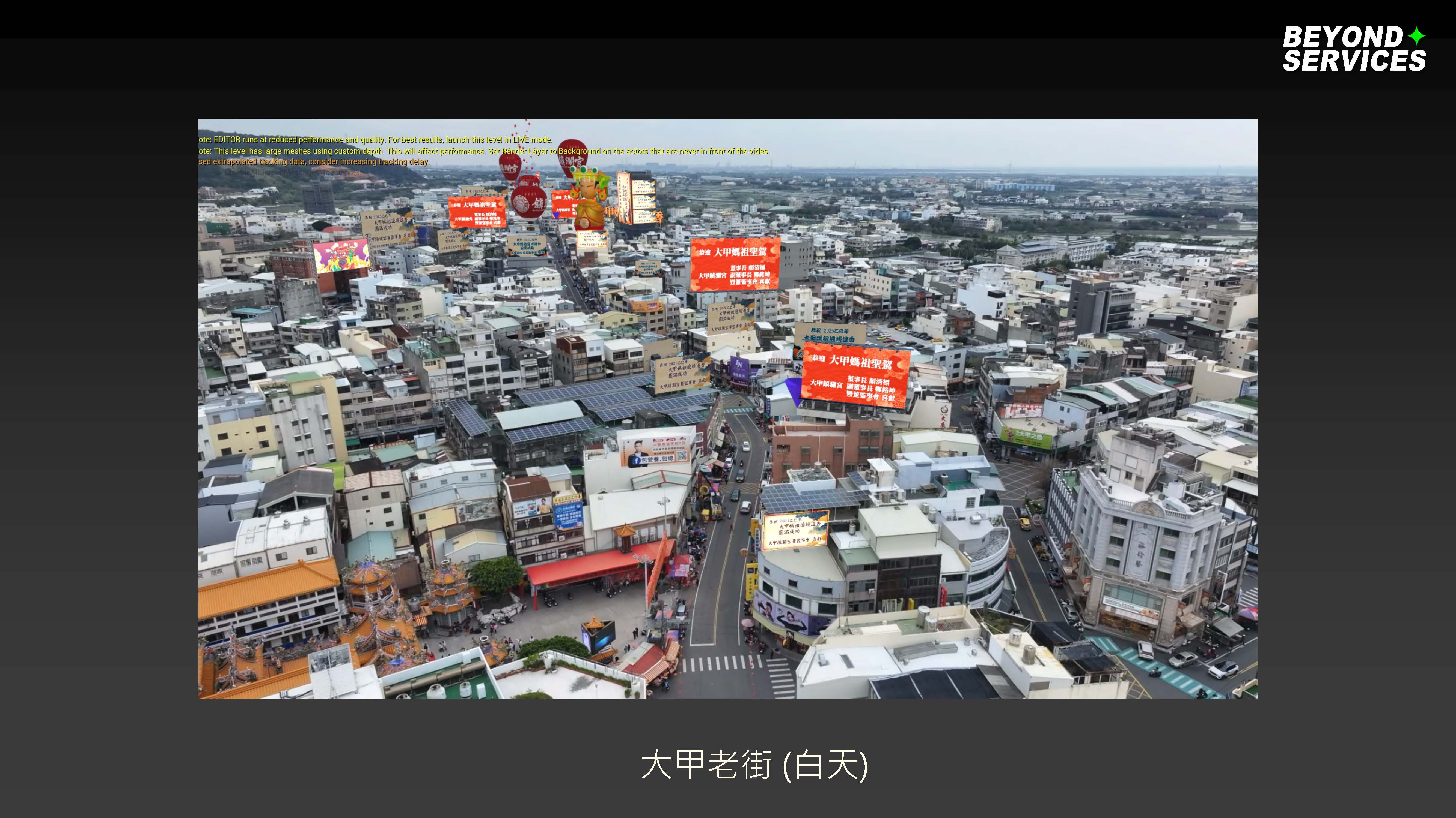 The live stream ran continuously from morning until night, capturing the pilgrimage’s journey from Jenn Lann Temple to the Dajia River Bridge. The Augmented Reality (AR) system achieved long-distance, real-time positioning across several kilometers, covering more than five key attractions and virtually spanning over 10 kilometers, nearly half of Dajia Township - a remarkable feat for any virtual production team. This groundbreaking AR broadcast marked a milestone in virtual production, astonishing online audiences with a rich layer of digital storytelling. Viewers were immersed in a dynamic experience where AR advertisements and virtual objects were seamlessly integrated into the landscape, transforming the entire town into an interactive, real-time virtual stage.